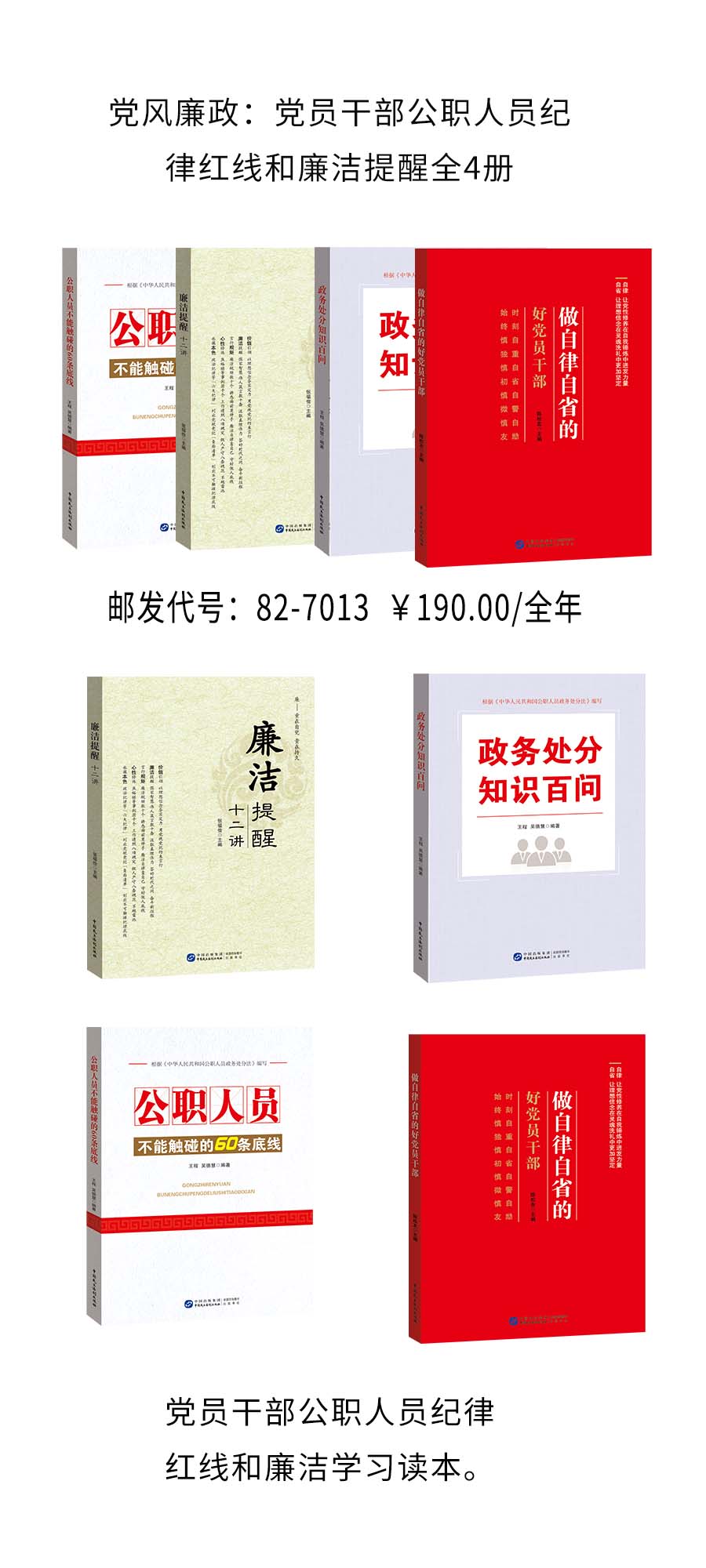 党风廉政:党员干部公职人员纪律红线和廉洁提醒全4册