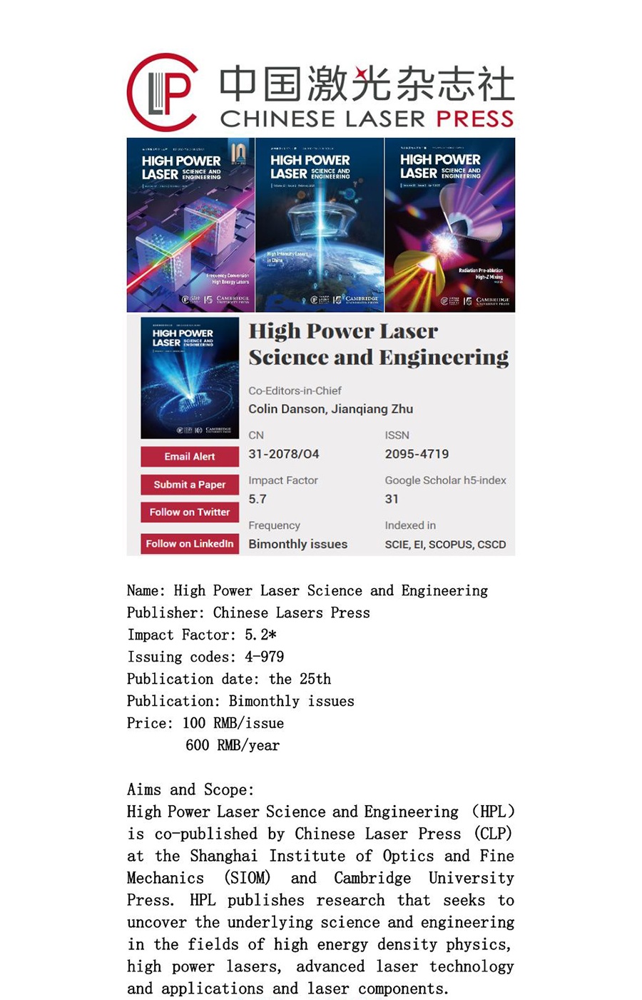 高功率激光科学与工程(英)